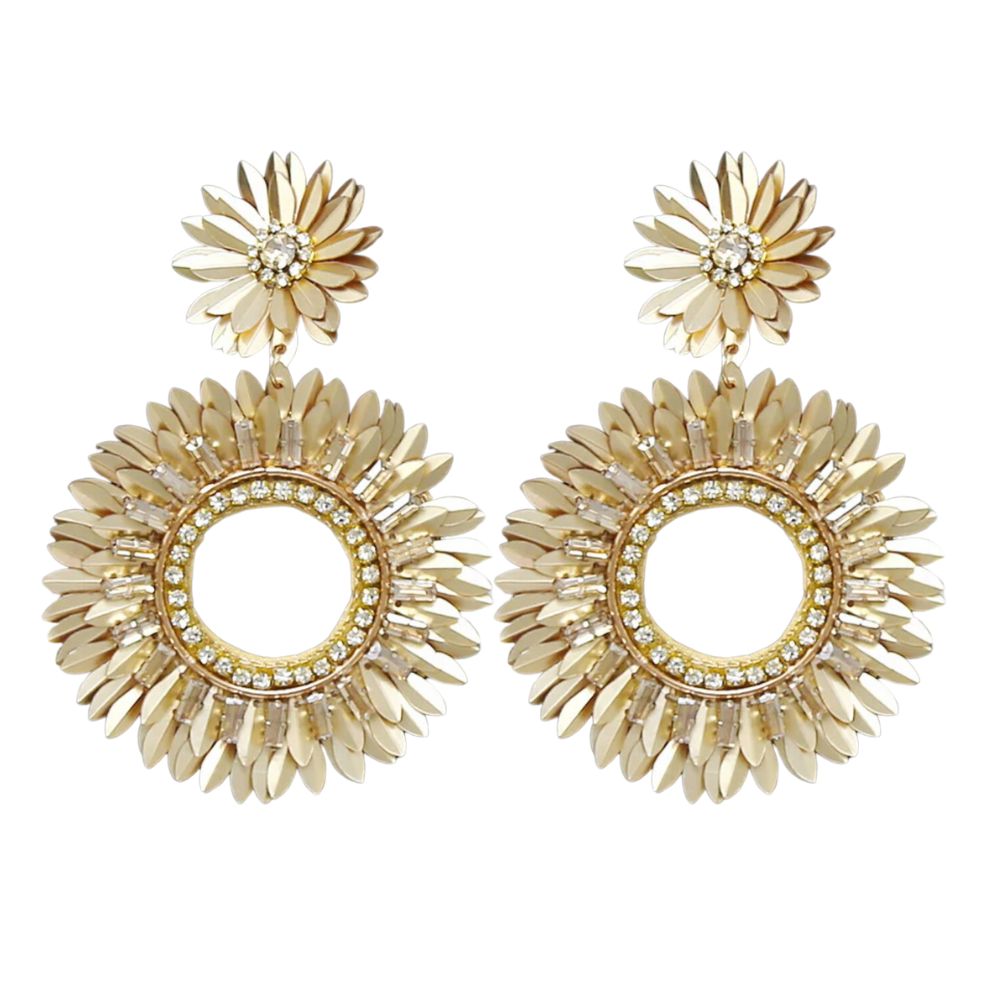 Marguerite Gold Sequins Rhinestones Flower Drop Earrings