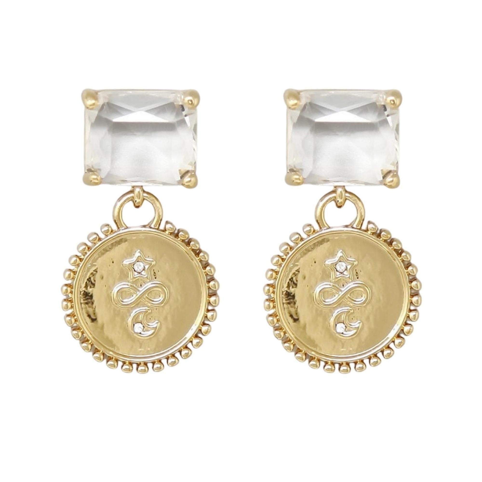 Sorbonne Gold Coin Clear Crystal Drop Earrings